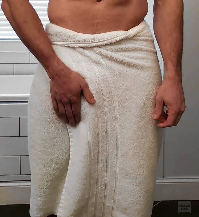 Ik stond met mijn handdoek om mijn middel en speelde ondertussen een beetje met mijn half stijve paal.